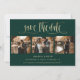 Elegant emerald grönt och guld bröllop 4-foto sparar datumkorten med modern kalligrafi. Anpassa det här kortet enkelt med information om bilder och bröllop, inklusive en webbplats för bröllop.