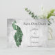 Anpassa ett unikt bröllop-meddelande med en Emerald Grönt Peacock Spara datumet. Meddelandedesign har en elegant-påk mot ömtålig lövning och grym bakgrund och text som du kan anpassa med dina datumuppgifter i bröllop. Ytterligare spara datum meddelande som är tillgängligt för den här konstruktionen i en mängd olika färg.