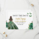 Meddela din speciella dag med en förtjusande Emerald Grönt Princess Quinceañera Spara datuminbjudan. Den här inbjudan anger tonen för ett royal firande. Den innehåller en vanlig smaragdpalett och information om eleganten i färg. Med delikata accenter som passar en prinsessa fångas magin av din kommande quinceañera. Den här tidlösa designen av gäster från inbjudan för att markera sina kalendrar och förbereda en oförglömlig dag fylld med skönhet, glädje och omhuldade minnen när du firar din 15-årsdag i stil.