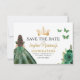 Meddela din speciella dag med en förtjusande Emerald Grönt Princess Quinceañera Spara datuminbjudan. Den här inbjudan anger tonen för ett royal firande. Den innehåller en vanlig smaragdpalett och information om eleganten i färg. Med delikata accenter som passar en prinsessa fångas magin av din kommande quinceañera. Den här tidlösa designen av gäster från inbjudan för att markera sina kalendrar och förbereda en oförglömlig dag fylld med skönhet, glädje och omhuldade minnen när du firar din 15-årsdag i stil.