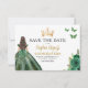 Meddela din speciella dag med en förtjusande Emerald Grönt Princess Quinceañera Spara datuminbjudan. Den här inbjudan anger tonen för ett royal firande. Den innehåller en vanlig smaragdpalett och information om eleganten i färg. Med delikata accenter som passar en prinsessa fångas magin av din kommande quinceañera. Den här tidlösa designen av gäster från inbjudan för att markera sina kalendrar och förbereda en oförglömlig dag fylld med skönhet, glädje och omhuldade minnen när du firar din 15-årsdag i stil.