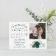 Det här vackra bröllop spara datum-kortet har en rustik boho-chic med skriptbokstäver och ett kluster av handmålat vattenfärgsfärgat ro i skuggor av grönt och sage från emerald. Det finns en anpassade-kalender där du kan placera ett hjärta runt ditt bröllop-datum med plats för ditt foto, parets plats namn & bröllop. Elegant, snyggt och chic, det här kortet är ett underbart sätt att låta dina vänner och familj veta att spara datumet för din speciella dag.