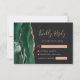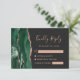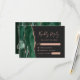 Det moderna bröllop OSA-kortet från elegantens lämnat kant har ett framväxande vattenfärgat grönt i gräns som trimmas med faux ro guld glitter. Texten finns i handskriftsskript för ro rosa och typsnitt för färgplatta på en svart bakgrund. Den omvända sidan har en matchande grönt och ro guld har en agate-design.