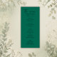 Vi presenterar vårt exquisite bröllop-menykort med minimal grönt av nödanrop, svartmeny typografi och en grey tropical lämna, monstera-design på andra sidan. Hobinishop