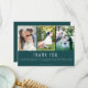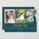 Vårt smaragdkort i Modern Bröllop Tack är perfekten för att visa din uppskattning för kärlek och det stöd du har fått i bröllopsdagen. Den här moderna tre fotodesignen fångar din skönhet, med en sofistikerad bakgrund med grönt i frammarsch. Anpassa med ett hjärtligt budskap för att tacka familj och vänner.