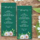 Ge din firande ett finare elegans med Emerald Grönt White Blommigt Bröllop Menu - en ny, tidlös design som parar rikedomen i djupt liggande smaragder med den känsliga skönheten hos vita blommor. Kontrasten är ännu slående och skapar ett utseende som känns både klassiskt och modernt. Det här menykortet är perfekt för formella bröllop, trädgårdskårar eller sofistikerade kvällsaffärer och ger en polerad beröring till varje ställe-inställning. Ren typografi säkerställer att dina kulinariella erbjudanden är lätta att läsa, medan blommigten accentuerar ram med naturcharm. En perfekt som blandar enkelhet och sofistikering, den här menyn är mer än en lista - det är ett tankeväckande uttryck för bröllop stil och anda.