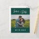 Skicka upphetsning till dina gäster med den här grönten och det vita fotokortet bröllop spara datum! De väntar otåligt på er kommande bröllopsinbjudan.
