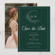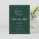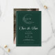 Emerald Grönt Wispy Vapensköld Monogram Spara datuminbjudan - Vår moderna rustic emerald grönt sparar datum som är höger på trender och är enkel och elegant. Spara datumet har en klok krans som omger ett modernt bröllop-monogram. Det är personlig med modern elegant-typografi och accentuerad med vacker kalligrafi. Spara datumet ingår i en samling. Du kan enkelt ändra bakgrunden färg i designen verktyg så att den matchar färg-paletten.