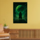 A mysterious hooded figure stands beneath a glowing green planet, creating a surreal and atmospheric fantasy scene. Perfect for lovers of moody, dramatic, and otherworldly artwork.