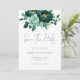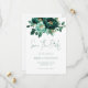 Emerald and Guld Flowers QR Code Bröllop. Blommigtar för fantastisk grönt och löv och ett skript för elegant som anger Spara datum. Resten av texten kan du enkelt anpassa med dina detaljer. Lägg till QR-koden på webbplatsen bröllop på baksidan eller ta bort den och texten på baksidan om det inte behövs. Tillgänglig digitalt eller utskriven.