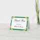 Tack till alla dina gäster i bröllop med ett vackert anpassningsbar tack. Det här vikbara kortet har en charmerande pärla och ett färgband med gyllene gulter som är utformat med en lukande bakgrund från grönten. Kortet har fram- och baksida av färg-utskriften på fullt. Även om detta tackkort skulle vara en fantastisk fingervisning för vilken säsong som helst, skulle vår eller sommartid bröllop på ett utmärkt sätt kompletteras med den lush grönten och den livliga gulten färg. Ett tackmeddelande visas elegant på inbjudningens framsida. Ta med namnen på bruden och trippen från till kortet till ge en ännu mer personlig beröring, eller lämna utrymmet tomt om du vill lämna rum för handskrivna namnteckning. Insidan av det vikta kortet lämnas tomt för att du ska kunna överlämna skrivans personliga anteckning till var och en av mottagarna.