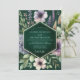 Immerse your special day in an enchanting atmosphere with this moody botanical design. A deep emerald green background sets the stage for a delicate watercolor arrangement of lavender, purple anemones, and soft white blossoms. Lush sage green foliage and wispy grasses add texture, creating a look of romantic, wildflower elegance.