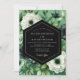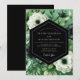 Embrace a dramatic and elegant aesthetic with this stunning botanical design. Lush white anemones with dark centers and deep, moody charcoal blossoms are beautifully rendered against a rich emerald green background. Verdant leaves and foliage fill the composition, creating a sophisticated and romantic atmosphere for your special day's stationery.