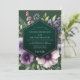 Evoke an air of moody romance with this elegant botanical design. A deep emerald green background provides a dramatic canvas for a lush arrangement of flora. Painterly anemones in shades of plum, amethyst, and white bloom alongside delicate lavender sprigs and verdant fern leaves, creating an enchanting and sophisticated atmosphere for your special day.