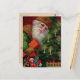 Tomten är lastad med en väska av leksaker och mycket jultjusare. Ett närliggande träd ligger med glimmerande pärlor och glödande ljus. Tomten önskemål alla ett God jul i gyllene bokstäver. Det pulserande färg och detaljerat beskriva det här Viktorianska vykortet ger en perfekt för din korrespondens och dina dekorativa i helgdag.