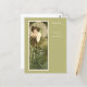 Ett vykort med illustrationen av konsten av Alphonse Mucha (1860-1939), Emerald from the Precious Stones Series (1900). En porträtt är en modig kvinna i en grönt, med grönt i förgrunden. Ordföranden har djurhuvuden som inspirerats av en ordförande som ägs av Mucha.
