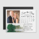 Dessa vackra magnetkort är perfekten för att låta din familj och dina vänner veta att spara datumet för ditt kommande bröllop. Den romantiska designen har en enda, sedan länge härdad, framträder grönt färgad ro som ljuger på sin sida och reflekterar eller speglas i bassäng i vatten med ditt foto ovanför den. Av till högerna är en anpassade-kalender som visar din bröllop-månad med ett hjärta runt din speciella dag. Det här kortet är bekvämt och praktiskt..