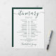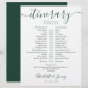 Denna stilrena smaragdgröna och vita bröllsschema tidslinje kan anpassas med dina bröllsuppgifter i chic skrivstil. Designad av Thisisnotme©