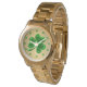 Unisex överdimensionerade guld-armband med en bild av en uppdagad skamrock på borstat guld och en nödväckarklocka ansikte. Se matchande akryliskt fotoskulpturstift, rund charm, akrylisk fotoskulpturnyckelkedja och runda halsband Se hela St. Patrick's Day Watch-samlingen under ACCESSORIES-kategorin i avsnittet HELGDAGAR.