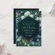 Evoke a sense of moody romance and sophisticated elegance with this dramatic floral design. A deep emerald green background provides a stunning contrast for lush, painterly blossoms in shades of dusty slate blue and ethereal off-white. Soft-petaled anemones and delicate buds are nestled amongst verdant leaves, creating a rich and opulent botanical arrangement.