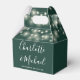 Elegant bröllop-förmånslåda med söt string ljus, chic namnteckning skriptdatum namn och speciellt datum på en bakgrundsbild av en nödställd grönt. Du kan anpassa dig med ditt eget tack till ditt meddelande på motsatt sida. Ett perfekt sätt att tacka gästerna! Designad av Thisisnotme©