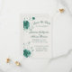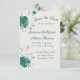 This romantic save the date card features a one-sided border of painterly emerald flowers and soft vines framing elegant script typography on a warm ivory background, creating a timeless announcement that coordinates beautifully with classic botanical wedding suites.