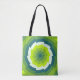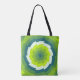 Den här bilden har ett dynamiskt spiral kaleidoskop mönster skapat med taggiga, förreglande former som utstrålar från mitten i koncentriska cirklar. Paletten i färg består främst av olika nyanser av grönt och teal som skapar en livlig, energisk och nästan hypnotisk visuell effekt. Den upprepade cirkelformade geometrin, i kombination med det djärva, zigzag kant, ge är ett dynamiskt, modernt och något psykologiskt drag.