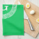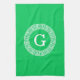 Emerald Wht Grekiska Nyckel Rnd Ram Initial Monogr Kökshandduk