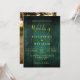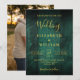 Denna smaragdgröna rustika boho ladan trä bakgrund bröllopsinbjudan kan anpassas med din information i modern guldtypografi och ett speciellt foto på baksidan. Designad av Thisisnotme©