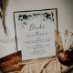 Denna smaragdgröna bröllopsdrycker meny skylt är perfekt för ett boho-bröllop. Den eleganta men rustika designen har stämningsfullt mörkgröna akvarellblad och eukalyptus med en modern bohemisk skogsstämning.