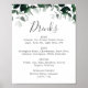 Emeraldgrön växtlighet Bröllopsdrycker Meny Skylt