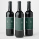 Emeraldgröna minimalistiska monogram bröllop vinflaska etikett