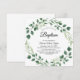 Denna fantastiska smaragdgröna kvadratiska dopinbjudan är perfekt för en boho-inspirerad bebis dop. Med mörka gröna vattenfärgblad och eukalyptus, förenar designen elegans med en rustik, modern bohemisk skogsstämning. Ett tidlöst och stilrent val, denna inbjudan fångar vackert naturens och tron essens. Helt anpassningsbar för att göra den unik för dig.