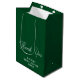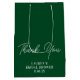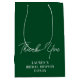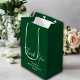 Skapa ett bestående intryck med denna eleganta emeraldgröna gåvpåse som passar perfekt med ditt bröllopstema. Den minimalistiska designen med brudens namn och bröllopsdatum ger en personlig beröring när dina gäster tar med sig presenter hem från bröllopsfesten.