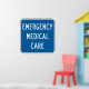 Bring important safety aid and awareness to any room with this high-quality poster featuring the Emergency Medical Care graphic. Perfect for display in a hospital facility, first responder station, classroom, or medical response training area. This poster displays the clear directional symbol in a high-attention format. The blue health care design ensures maximum visibility, making it powerful signage for safety information. This is a crucial, helpful graphic piece for promoting awareness, much larger and more visible than an emergency sticker. Available in multiple sizes to fit your space.