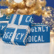 Make any gift stand out with this unique wrapping paper featuring a repeating pattern of the Emergency Medical Care graphic. This high-attention paper is perfect for wrapping gifts for first responder personnel, hospital facility staff, or medical response volunteers. The clear directional symbol acts as unique safety aid signage. The repeating blue health care graphic pattern is a helpful graphic addition to any present. Use this paper to show support and recognize the importance of emergency care.