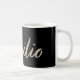 Eine sehr schöne edle personalisierte Tasse / Kaffeetasse / Teetasse im whitegold Lettering Look auf schwarz für Emilio.