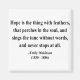 "Hoppet är sak med fjädrar, som lever i själen och sjungor tonen utan ord och aldrig slutar alls."