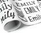 Black EMILY's namn på vit bakgrund. Färg kan ändras av kunden. Kontakta mig via den här webbplatsen eller på liveslow@charter.net om du vill ha en ändring av namn.
