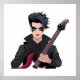 Emo boy with black hair, dark makeup and electric guitar