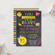 Vår Emoji födelsedagsfest - svart tavlainbjudan är perfekt för ditt barns födelsedagsfest för emojitema! Denna design presenterar en svart tavlastilbakgrund, och färgrikt, synar emojitemadiagram liksom hjärta emoji, tårtan och hjärtor.