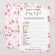 En delikat modern blomsterlig bröllopsdusch "Emoji Pictionary" spel, designen har ett rosa och guld blomster mönster. Detta kort är personligt med den blivande brudens namn och dusch datum.