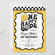 Fira din lilla milstolpe med den här groovy-inbjudan på första födelsedag! Med en glad gult lycklig ansikte mot en ren vit bakgrund balanserar den här designen perfekt en modern vibe med en retrotwist. Den fet, svarta och vita, schackade gräns ger en lekfull snyggt, ge av en coola, 70-inspirerad känsla.