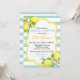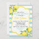 Fira bruden som ska bli med den här pulserande citronmatade inbjudningskort för möhippan! Den här designen ger dig en aning solljus till ditt evenemang med sansad gult citroner och färsk grönt löv mot mjukt teal och vitt rand. Elegantens blandning av djärvt och manusskript typsnitt tillför en modern men charmig känsla, perfekt för vår eller sommar-firande. Den här inbjudan är tillgänglig som ett professionellt tryckt kort eller en praktisk digital nedladdning - perfekt för att skriva ut hemma eller skicka elektroniskt. Anpassa med din händelseinformation och få redot att duscha bruden med kärlek och citrussött. Perfekt för möhippor, party i trädgården och citronteman!