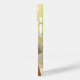 Emotionell flicka som lyssnar på musik i iphone case