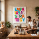A bold typographic statement about understanding and perspective. “Empathy as Strategy” isn’t decoration — it’s a mindset. Strong, hand-shaped letterforms bring energy, contrast, and individuality into the composition, creating a vibrant and expressive visual presence. The bold color palette turns the message into a striking focal point while maintaining a structured layout. Designed in a 3:4 format for balanced proportions. Available sizes: 12×16, 15×20, 18×24, 24×32, 30×40 inches. Works as a focal point or within a gallery wall — ideal for living rooms, offices, or creative spaces. Colors may vary slightly due to screen settings. Frame not included.