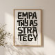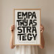 Ett djärvt typografiskt uttalande om förståelse och perspektiv. ”Empati som strategi” är inte dekoration – det är ett tankesätt. Starka, handformade bokstavsformer ger en rå, mänsklig kant samtidigt som kompositionen hålls ren och fokuserad. De reducerade svarta och neutrala tonerna skapar ett tidlöst, understatet utseende som integreras smidigt i moderna interiörer. Designad i formatet 3:4 för balanserade proportioner. Tillgängliga storlekar: 30x40 cm, 38x51 cm, 46x61 cm, 61x81 cm, 76x102 cm. Fungerar som en fokuspunkt eller inom en gallerivägg – idealisk för vardagsrum, kontor eller kreativa utrymmen. Färgerna kan variera något beroende på skärmens inställningar. Ram ingår ej