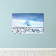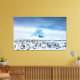 Det här fotot har en kejsare penguinkoloni med frusna isberger som bakgrund.