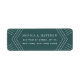 Elegant art deco stil-returetiketter har modern vit text på en mörk grönt bakgrund med geometriska detaljer. Designad att samordna med vår Empire bröllopsinbjudan i Jasper.