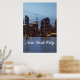 Färgfull Poster med Empire state Byggande lit i blå färg och New York City Skyline i Dusk